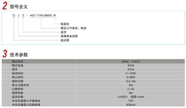 1.矿用隔兼本质安型交流软起动器 型号;QJZ-400/1140/660